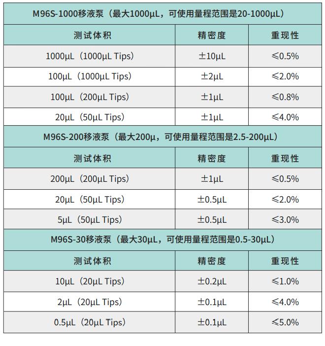 三種量程 20-1000μL、2.5-200μL、0.5-30μL,滿足不同移液體積的需求