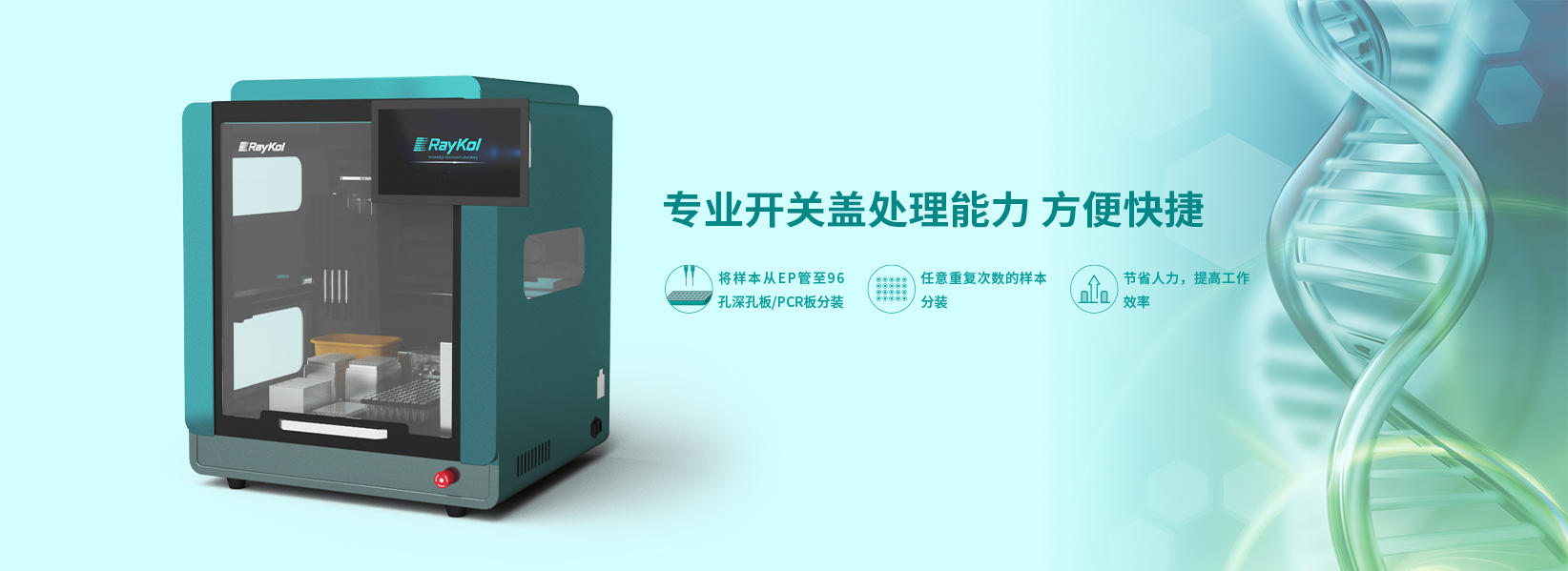 血漿、血清、尿液等臨床類樣本主要儲(chǔ)存于采血管、凍存管、EP管等原始樣本管中,在進(jìn)行后續(xù)代 謝產(chǎn)物研究過程中,第一步需要將樣本分裝至上樣板,然后進(jìn)行后續(xù)目標(biāo)物的提??;樣本分裝是一個(gè)重復(fù)機(jī)械操作過程,較耗費(fèi)人力,EP管開關(guān)蓋移液工作站可以實(shí)現(xiàn)將樣本從EP管至96孔深孔板、EP管至96 孔PCR板的分裝,且可以實(shí)現(xiàn)任意重復(fù)次數(shù)的樣本分裝操作,方便進(jìn)行下游不同檢測(cè)項(xiàng)目的樣本前處理過 程,節(jié)省人力,提高工作效率。