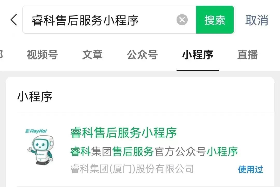微信搜索 睿科售后服務小程序