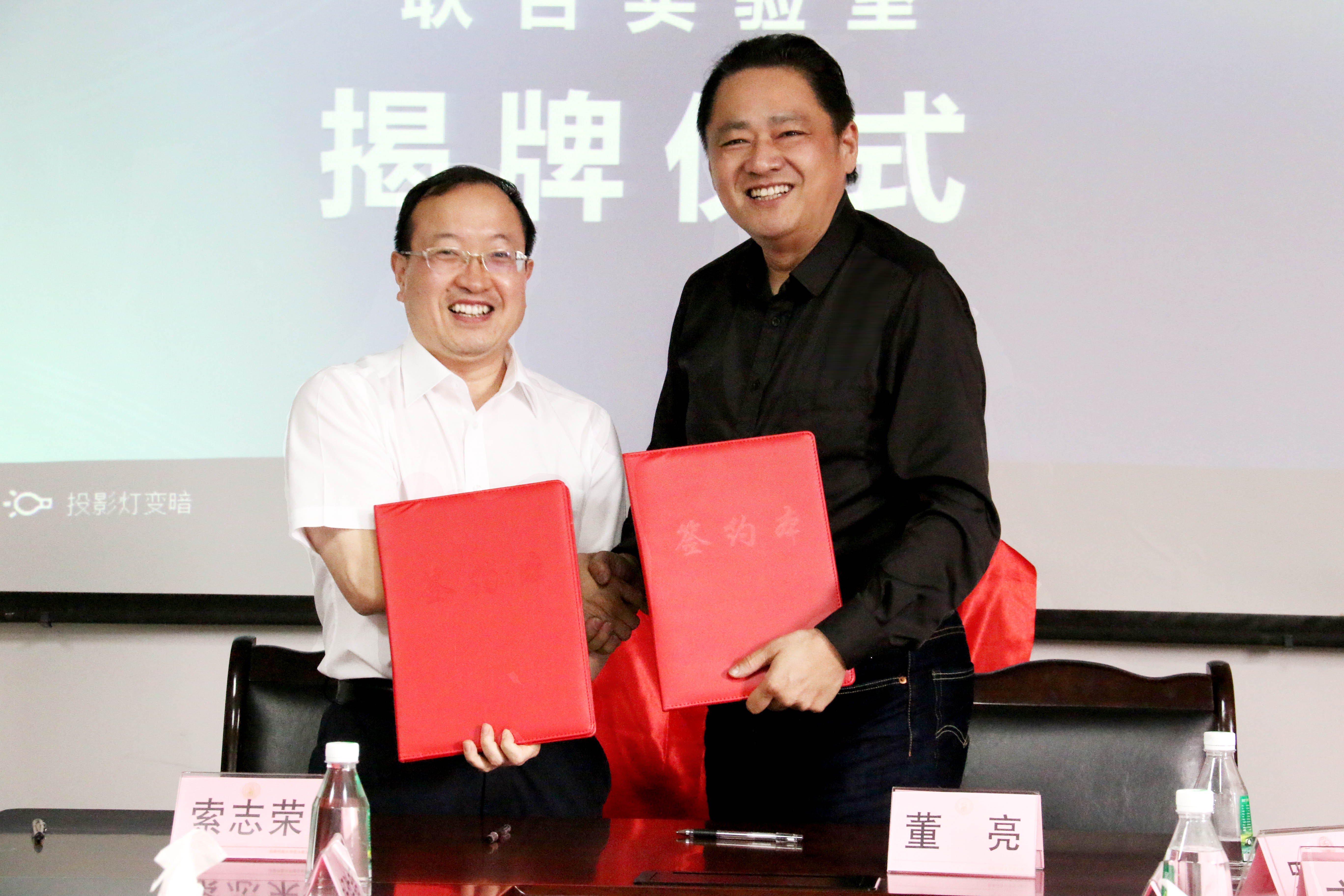 西南科技大學分析測試中心副主任索志榮與睿科集團副總經理董亮簽署戰略協議并合影