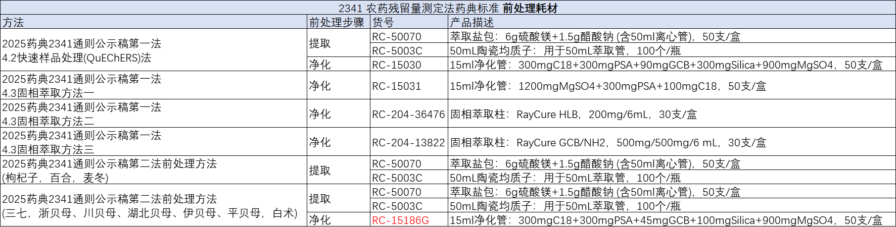 2341 農藥殘留量測定法藥典標準 前處理耗材解決方案