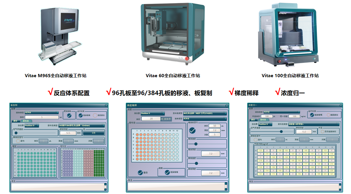 睿科自動化移液工作站包含4盤位、6盤位、10盤位三款移液工作站,可與96通道移液泵、8通道移液泵、4通道移液泵靈活搭配,高效、高通量完成樣本分裝、試劑添加等重復性操作,可不間斷批量處理樣本,減少人工誤差并提升通量。