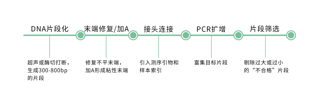 在建庫實驗中,一般是對接頭連接產物或者擴增產物進行片段篩選。對接頭連接產物進行篩選,可以在擴增前最大限度的去除不合格片段,提高擴增效率;對擴增產物進行篩選,是對最終文庫產物進行雙選,最大限度的保證文庫片段一致性,無論是哪種方式,都能實現文庫片段的嚴格把控。片段篩選的步驟一般包括: