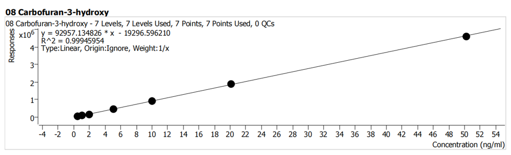 使用LC-MS/MS上機測定。上機結果標曲曲線的線性R^2=0.999以上,與手工配置偏差<3%符合線性要求,測試結果如下圖所示。
