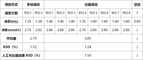 6.1使用睿科Auto Titra08全自動滴定儀可以完成標準物質的測定,滴定結果平行性、準確性良好。也可以達到人工滴定的標準。因此,可以使用Auto Titra08自動滴定儀可以代替人工進行水質總硬度的測定。