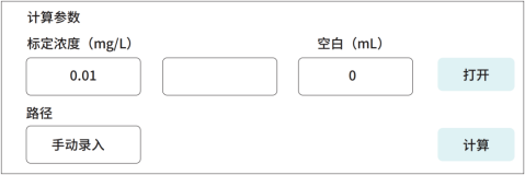 將標定濃度、空白滴定時消耗Na2EDTA標準溶液的體積V0輸入到軟件界面中,儀器內置計算公式,根據每個樣品滴定體積自動計算結果。