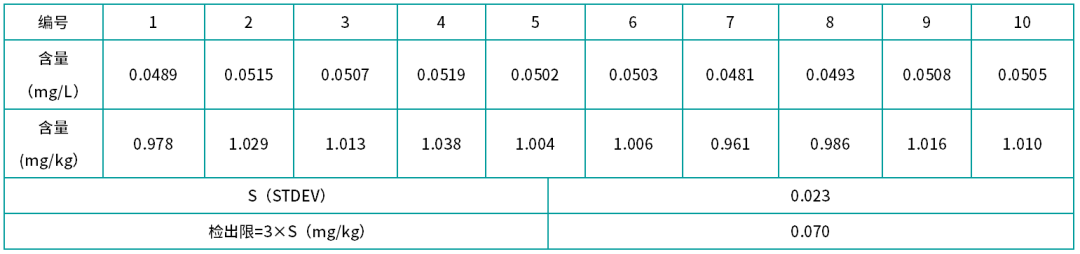 表2 硝酸鹽檢出限測試結果
