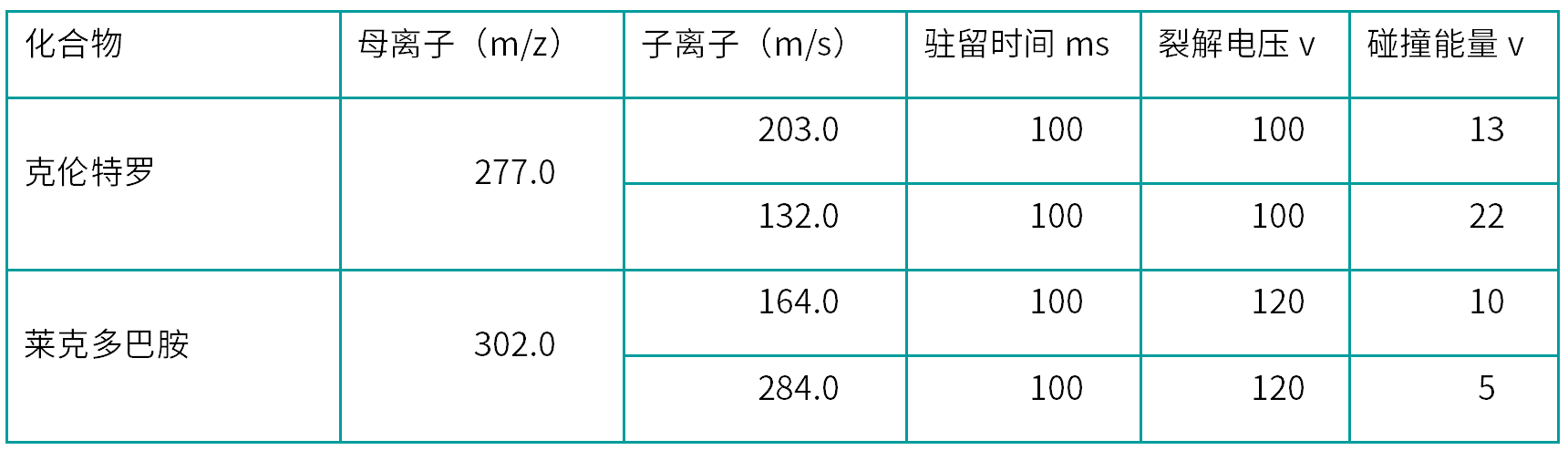 本文參考SN/T 1924-2011 《進(jìn)出口動(dòng)物源食品中克倫特羅、萊克多巴胺、沙丁胺醇和特布他林殘留量的測(cè)定 液相色譜-質(zhì)譜/質(zhì)譜法》標(biāo)準(zhǔn)方法,將試樣中殘留的克倫特羅、萊克多巴胺用β-葡萄糖醛甙酶/芳基硫酸酯酶酶解,乙酸銨緩沖溶液提取,正己烷脫脂,水相溶液經(jīng)混合型陽(yáng)離子交換固相萃取柱凈化,HPLC-MS/MS測(cè)定’酸化乙腈提取,HLB固相萃取柱凈化,氮吹濃縮,液相色譜-串聯(lián)質(zhì)譜法測(cè)定,內(nèi)標(biāo)法定量。